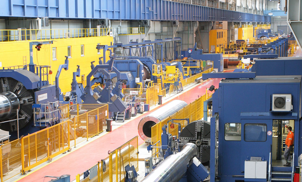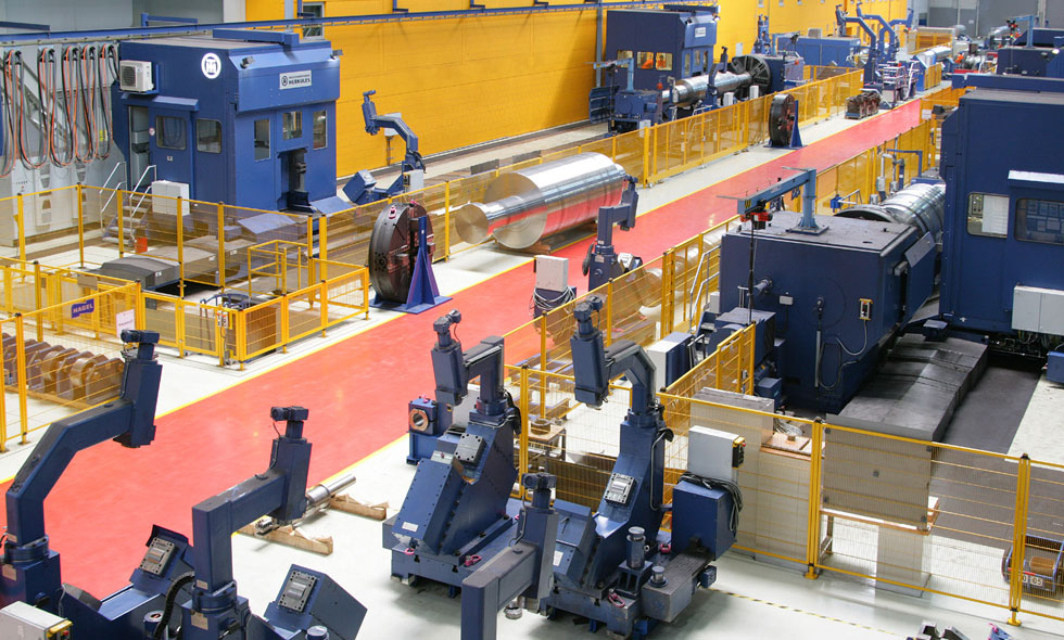 Farbgestaltung der neuen Halle der Neuen Schmiede Saar, Völklingen. Basierend auf einem eigens erstellten Farbkonzept wurde das Innere der 150 Meter langen Halle nach unseren Vorschlägen gestaltet.