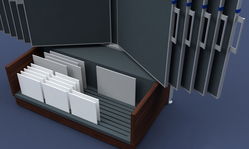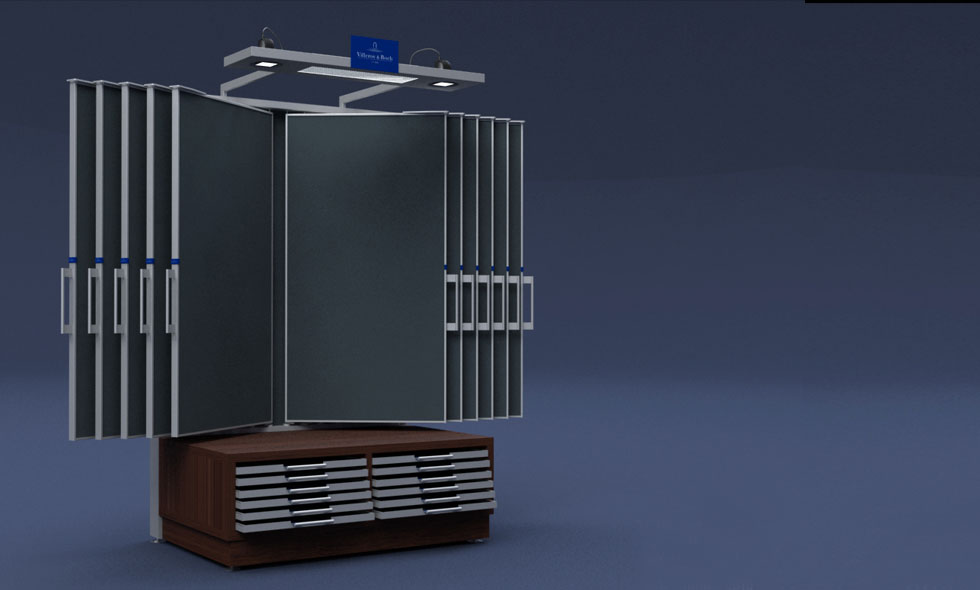 Design und Entwicklung einer Möbelserie zur Präsentation der neuesten Fliesenserien der Villeroy & Boch AG im Fachhandel.