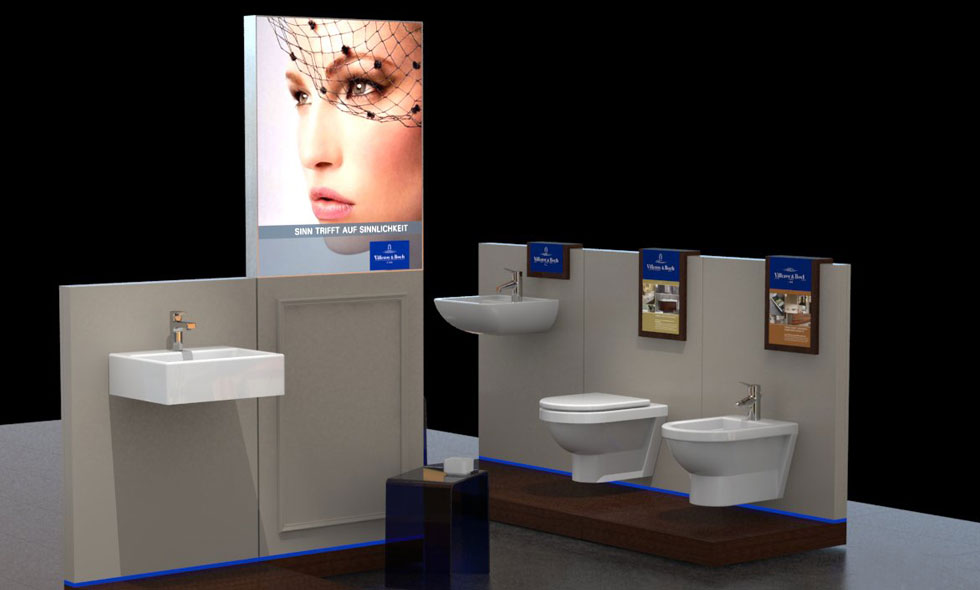 Design und Entwicklung eines Ausstellungskonzeptes für Badkeramik, Armaturen und Möbel der Villeroy & Boch AG im Fachhandel.